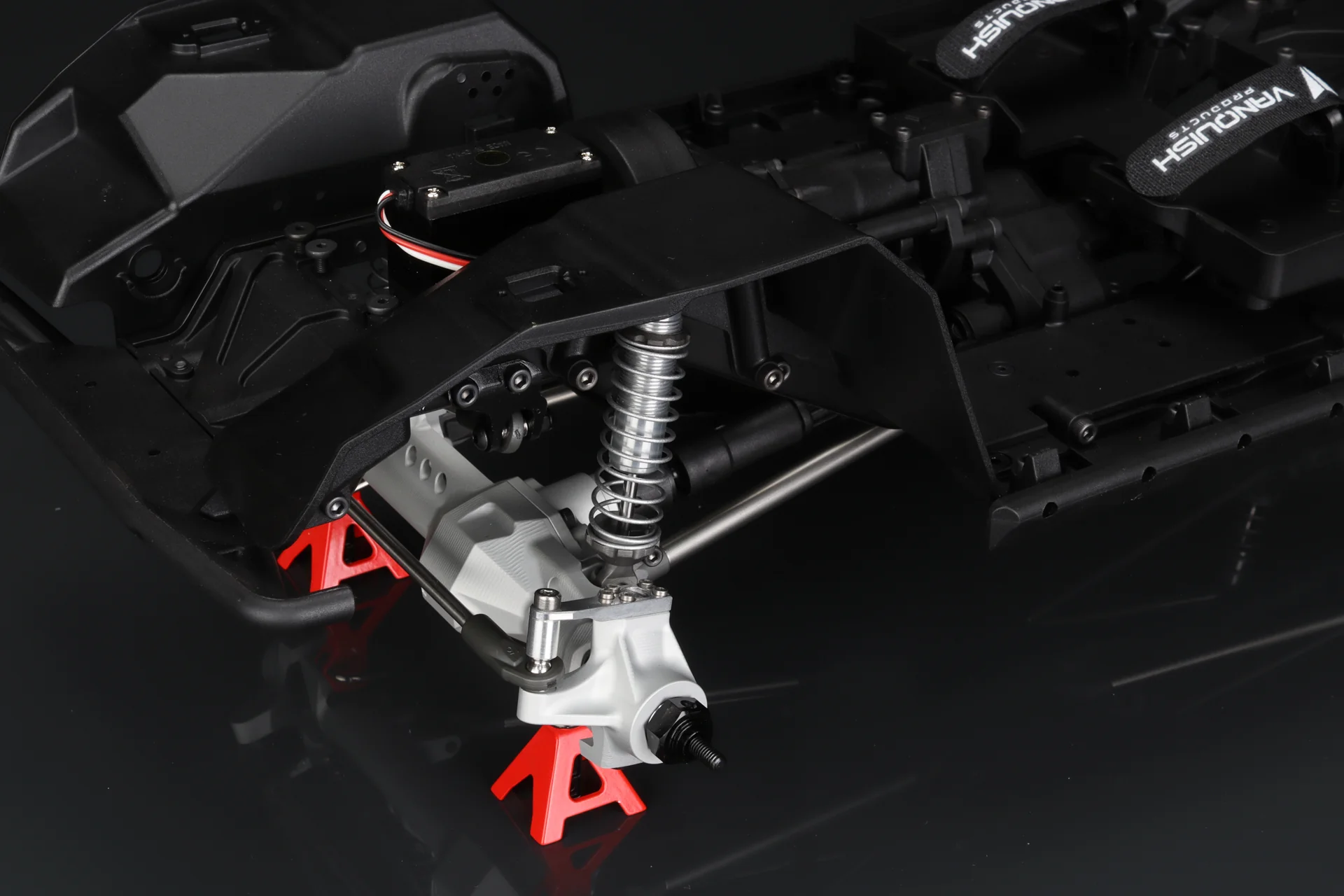 Das VS4-10-Chassis von Vanquish Products bietet eine ideale Balance aus realistischer Scale-Optik und kompromissloser Performance. Das Stahl-C-Profil-Rahmendesign sorgt für authentische Details, während geformte vordere und hintere Querträger die Rahmenholme an hochbelasteten Stellen verstärken.