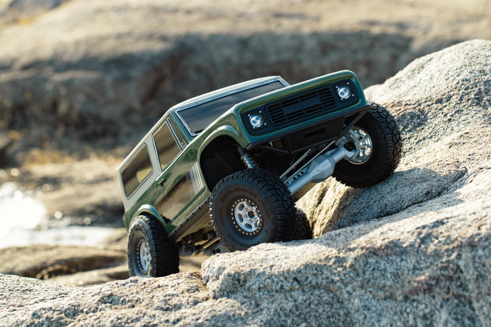 Im Lieferumfang enthalten sind gefräste F10-Starrachsen aus Aluminium, die für hohe Stabilität, eine hochwertige Scale-Optik durch die eloxierte Oberfläche sowie eine breite Kompatibilität mit einer Vielzahl von Optionsteilen sorgen. Ebenfalls enthalten ist ein exklusiver Satz transparenter 1,9″ Battle Born Wheels X-Ray-Felgen.