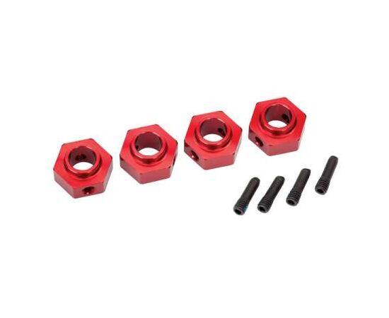 Wheel hubs, 12mm hex, 6061-T6 aluminu m (red-anodized) (4)/ screw pin (4)