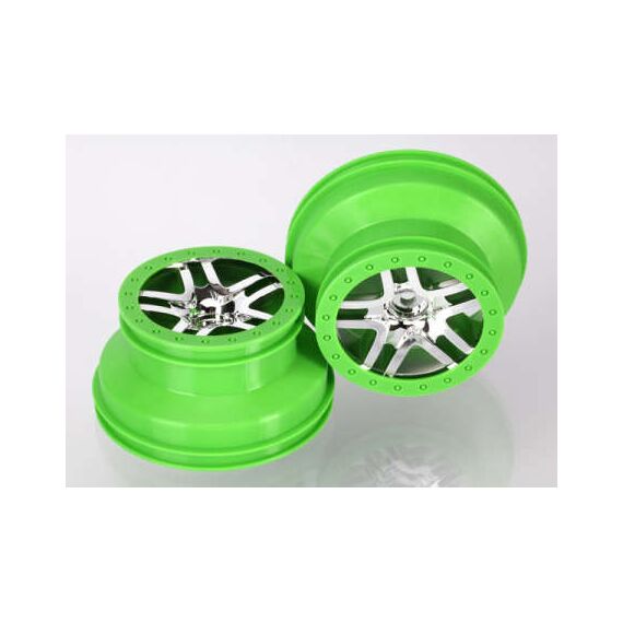 Wheels, SCT Split-Spoke, chrome, gree n beadlock style, dual profile (2.2' outer