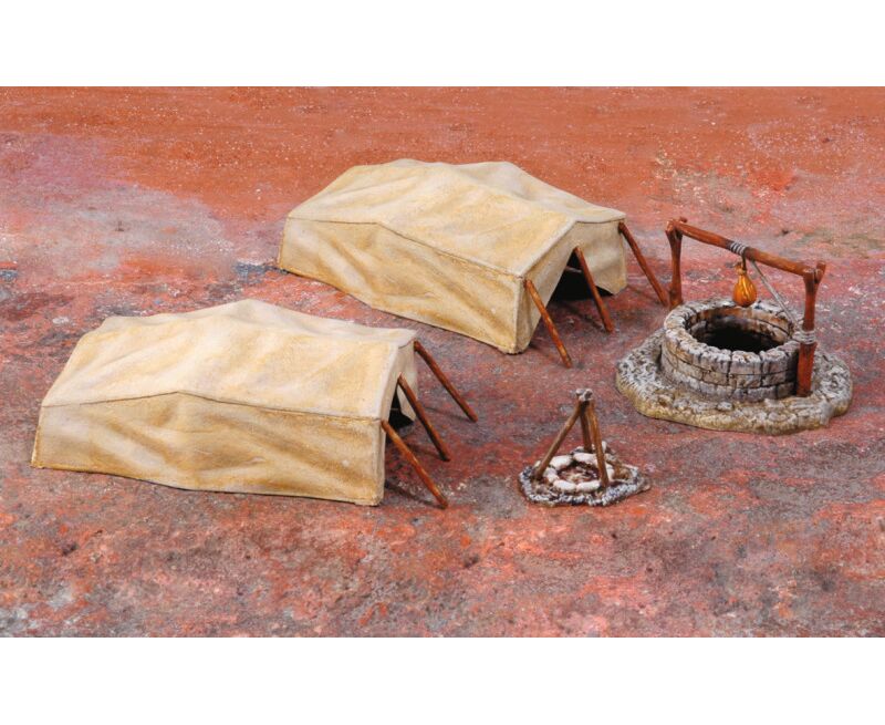 Diorama Zubehör Wüste Brunnen, Zelte, Feuerst.1/72